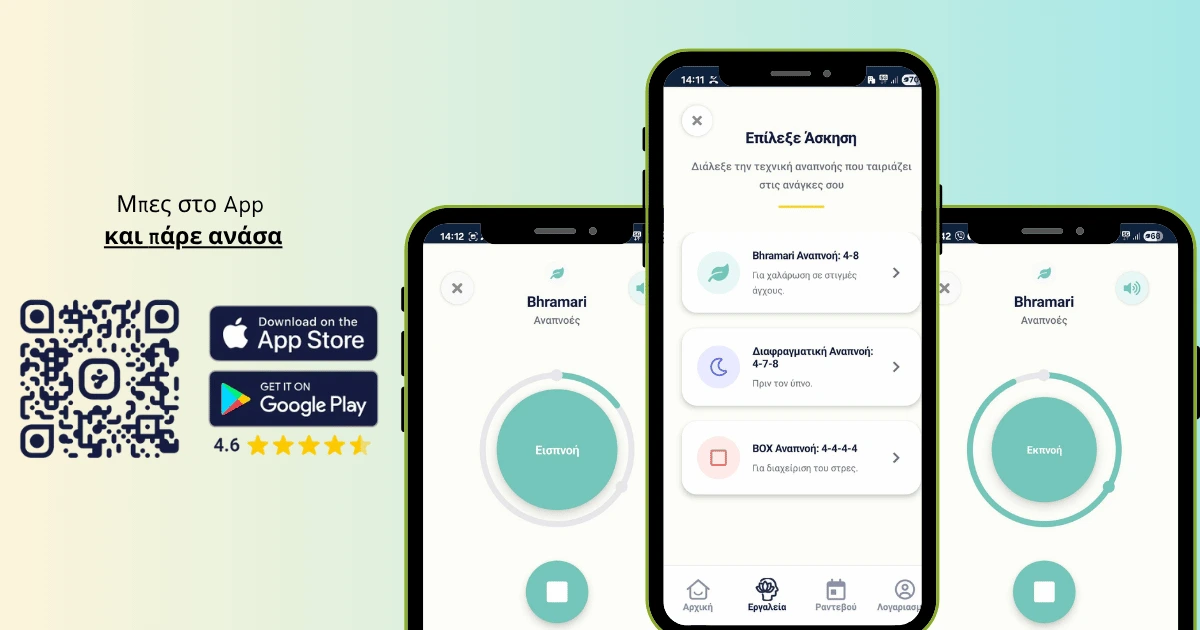 Μπορείς πλέον να εξασκείς εύκολα και γρήγορα καθοδηγούμενες ασκήσεις αναπνοής, μέσα απο το APP.